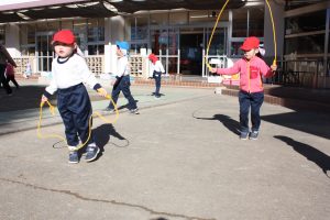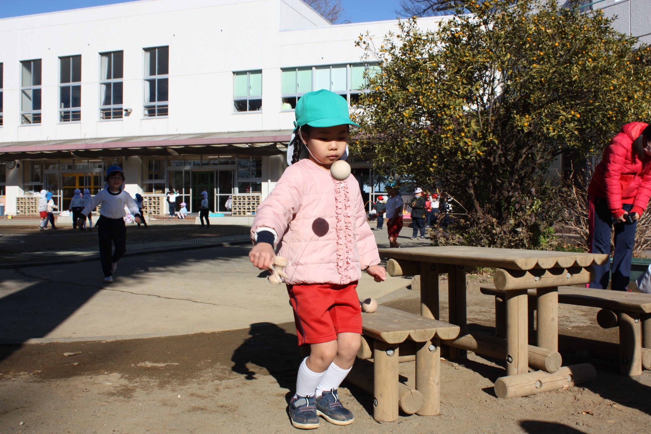 子どもたちの元気な挨拶と共に3学期が始まり、冬の自然を体感しながら園庭で遊ぶ園児たちです。