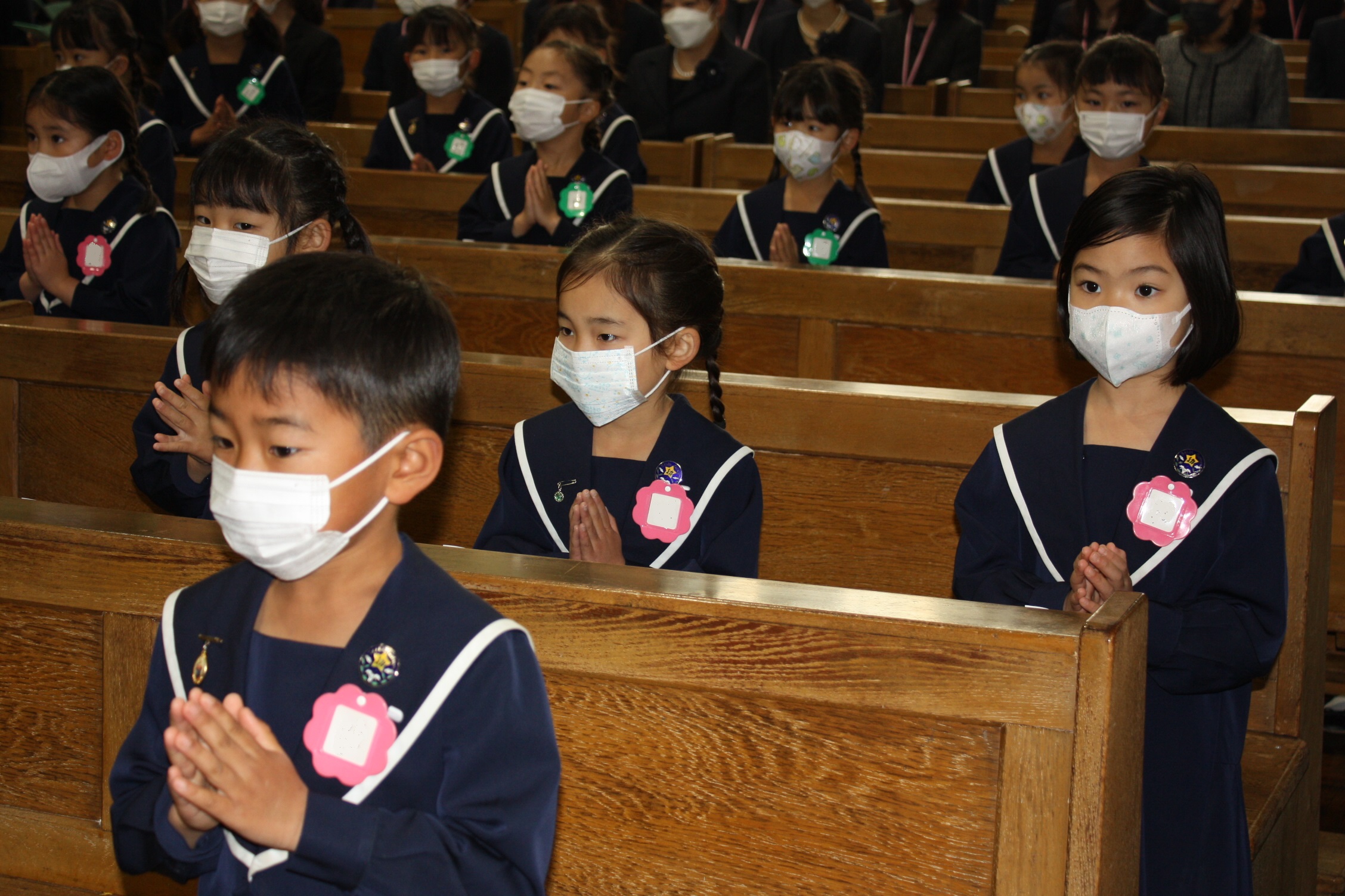 卒園感謝の祈り 2022年3月15日 卒園式を明日に控え、年長組と保護者で幼稚園で過ごした毎日をいつも導いてくださった神様に感謝のお祈りをしました。 これからたくさんの友だちと出会い、楽しいことや嬉しいこと、時には困ったことや悲しい気持ちになるときがあるかもしれません。そんなときには今日お渡ししたローソクに火をつけて神様にお祈りしてください。きっと神様がみなさんの心に小さな光を灯して明るい心にしてくださいます。星美の星のようにキラキラ輝いて周りを照らす光の子として過ごしてくださいね。