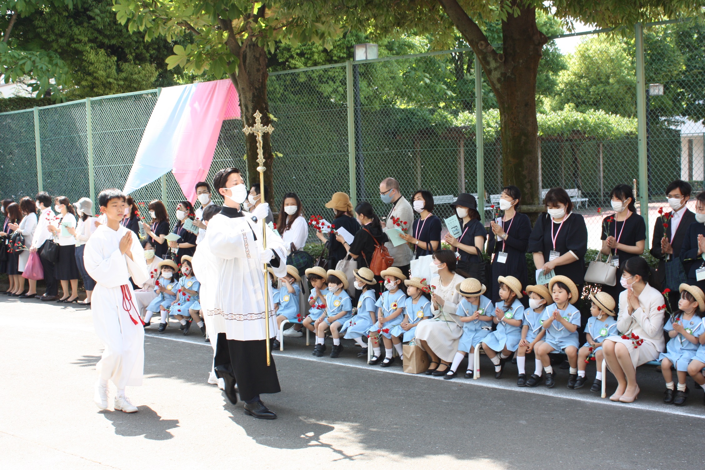 幼稚園・小学校・中学高等学校・短期大学・シスターたち星美学園のみんなで、今までマリア様を通していただいた、たくさんのお恵みに感謝して心から祈りと賛美をお捧げしました。