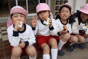 今日はほかほかの焼き芋をみんなでいただきました。秋の味覚に大満足の園児たちでした。