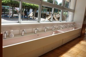2学期が始まりました 2024年9月2日 夏休みが終わり久しぶりに友だちに会った嬉しさを感じている子どもたち。笑顔がいっぱいで始まった2学期はホールで始業式と地震を想定した避難訓練を行いました。 夏休み中に男児トイレ便器を取り替え自動洗浄のものへ、手洗い場の水道は自動水栓へ取替工事をしました。