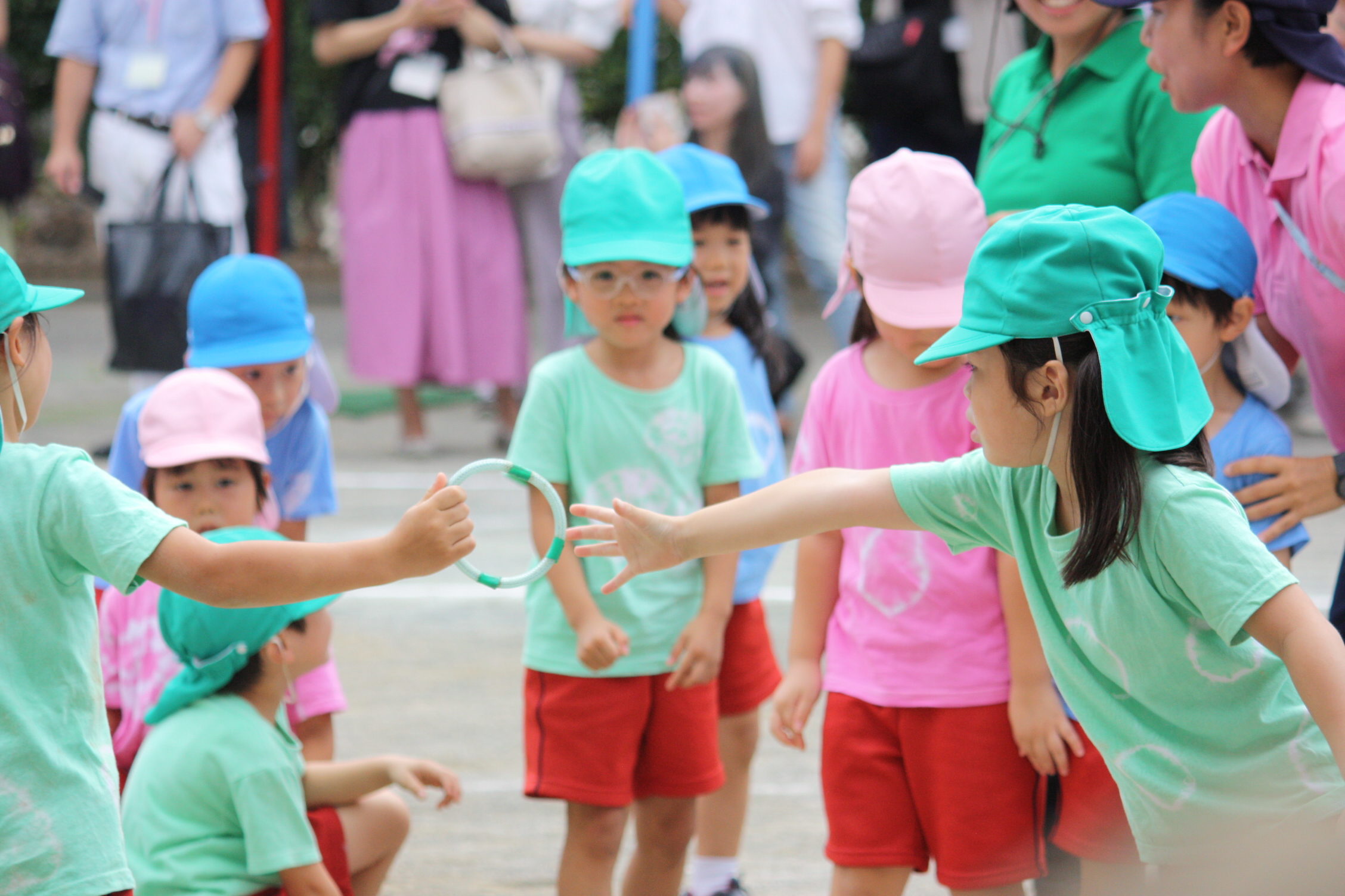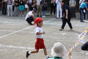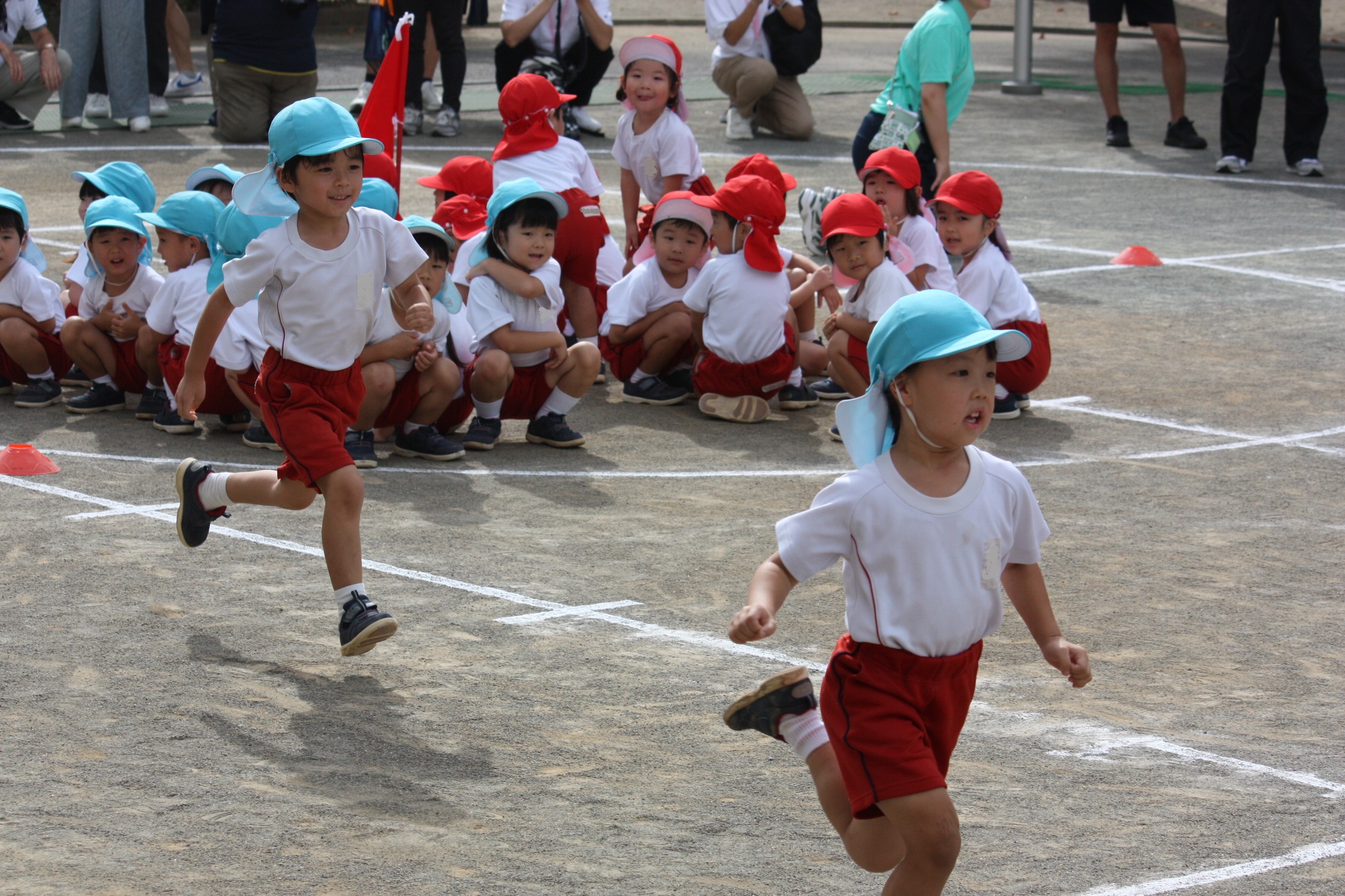 今日は運動会でした。年少組にとっては初めての運動会。ご家族に見守れて恥ずかしがりながらもかけっこの前は返事したり、ゴールテープまで走ったり、アニマルダンスをしました。年中組は2回目の運動会でした。かけっこでは早く走りたい、ダンスではお家の方に見てもらいたいなど、昨年度の経験もあり運動会を楽しんで参加していました。年長組は仲間と共に自分の持っている力を十分に発揮しながら参加していました。