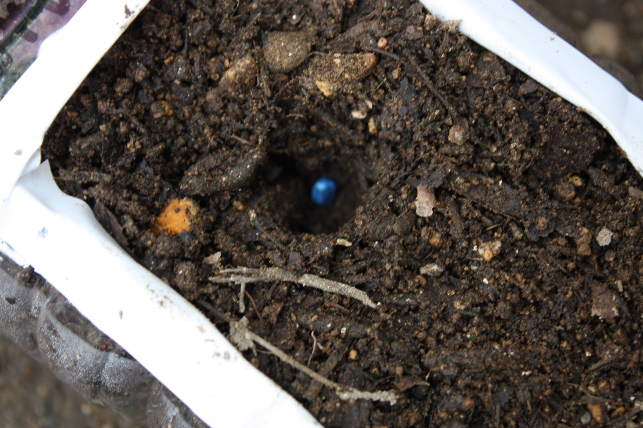 年長組はミニひまわりの種を撒きました。一人1つプランターを持ち、自分の種は自分で世話をしていきます。